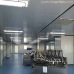 2) 間隔:用雙面彩鋼保溫板圍護(hù)及間隔,圍護(hù)面到天花頂;潔凈走廊及車間間隔處做通透鋁合金半玻璃窗,窗臺(tái)高900mm, 玻璃厚8mm, 高1200mm,玻璃窗高平門高度(2100mm);鋁合金窗料用特制凈化材料,45?度斜邊,與地面及天花交角做元弧及陰角接口,符合規(guī)范及衛(wèi)生消毒要求。